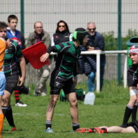 Le jeu s’équilibre avec un léger avantage pour le RCS qui veut se remettre la tête en avant – avec l’apport des Sacha, Paul, Folco, Jo et Colin venus apporter du sang frais aux troupes suresnoises en sur régime ! Bagneux continue à appliquer à la lettre son schéma de jeu avec ses atouts et finit par asphyxier nos Verts et Noirs. Théo tente bien une dernière relance mais commet l’en-avant, et prend 10 mètres pour contestation – par un excellent arbitre qui a maîtrisé parfaitement une partie à fort enjeu ! –