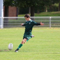 Dès l’entame, les Jaunes et Bleus prennent ainsi le jeu à leur compte en imprimant un gros rythme. La récompense arrive très vite puisque dès la seconde minute de jeu, ils marquent en coin ( 5-0; 2′ ). Piqués au vif, les Verts et Noirs prennent l’initiative et finalement sur un beau mouvement initié par Paul, c’est Nathan qui va à dame, quasiment entre les perches, gourmand mais efficace avec 2 marcquois sur le dos. Ca fait 5-7 avec la transformation de Théo (5′). A peine le temps de reprendre ses esprits, après plusieurs échanges « à toi à moi » entre les 2 équipes, et c’est le 8 marcquois qui nous fait son numéro, envoie ses gros pour une séance de pick & go pas piquée des vers, et Marcq en Baroeul reprend la marque face à une défense suresnoise……..apathique dirons-nous, sur le coup (12-7, 7′).
