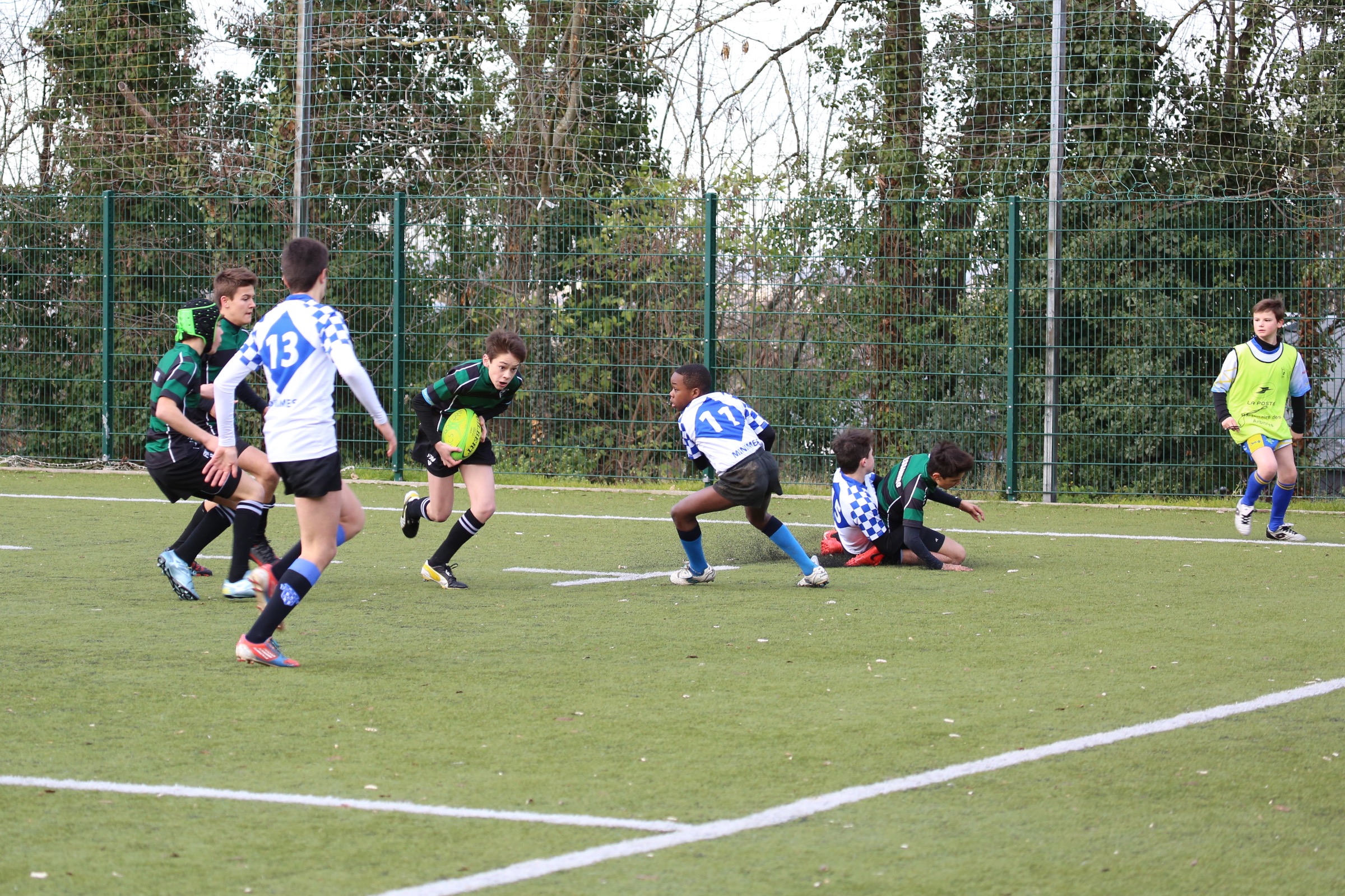12 janvier 2016Fin de la trêve des confiseurs et reprise pour nos minots ce samedi pour la 1ère journée de la seconde phase du Championnat Ile de France – pour ceux férus de règlement, de composition de poules, de niveaux, de phase finale, le Bulletin Officiel expliquant la suite des opérations par le menu détail est disponible sur le site du Club – En 2 mots, fin de la période expérimentale qui comportait une phase à 7 puis à 15 Touché/Contesté puis à 15 « normal » et retour au vrai jeu à 15 en 2 mi-temps de 15 minutes chacune.