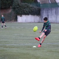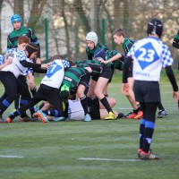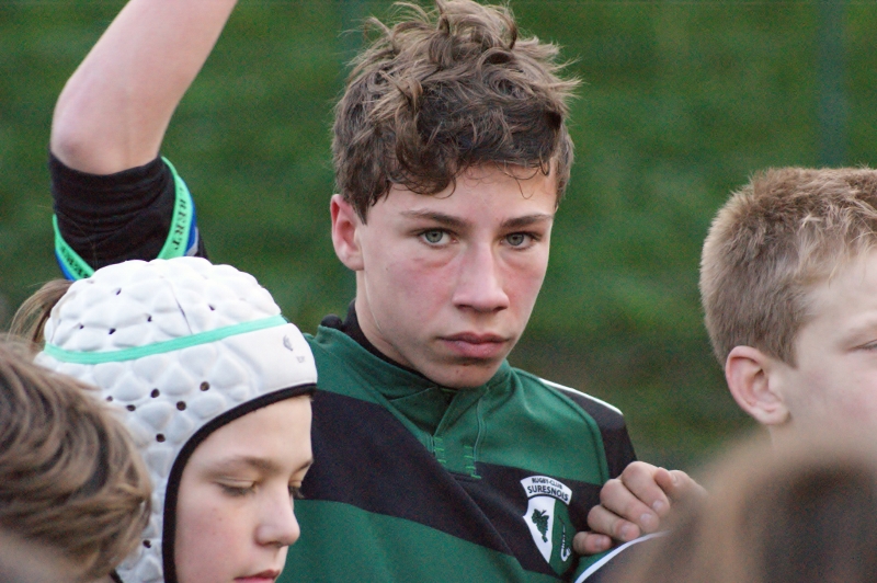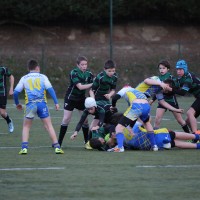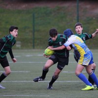 Revenons en effet à nos moutons, ou plutôt à nos minots pour qui l’appétit vient en mangeant….et qui dès la 6ème remettent le couvert donc pour envoyer l’ami Jack avec ses crochets ravageurs marquer le second essai de l’après midi suite à une récupération sur touche et surtout de belles transmissions de nos 3/4 décidément bien inspirés – les répétitions de gammes aux entraînements portant aussi leurs fruits – ( 6′ 14-0 ). A peine le temps de souffler que Mathis met les cannes au centre sur le renvoi, secondé au près par Corentin et ses grands abattis qui transmet à Hisé qui aplatit dans l’en-but ( 8′-19-0 ). Beaucoup de volonté et une belle fluidité entre les avants et les arrières et de multiples temps de jeu qui commençaient à éreinter une équipe de Parisis, qui baisse de pieds assez rapidement.